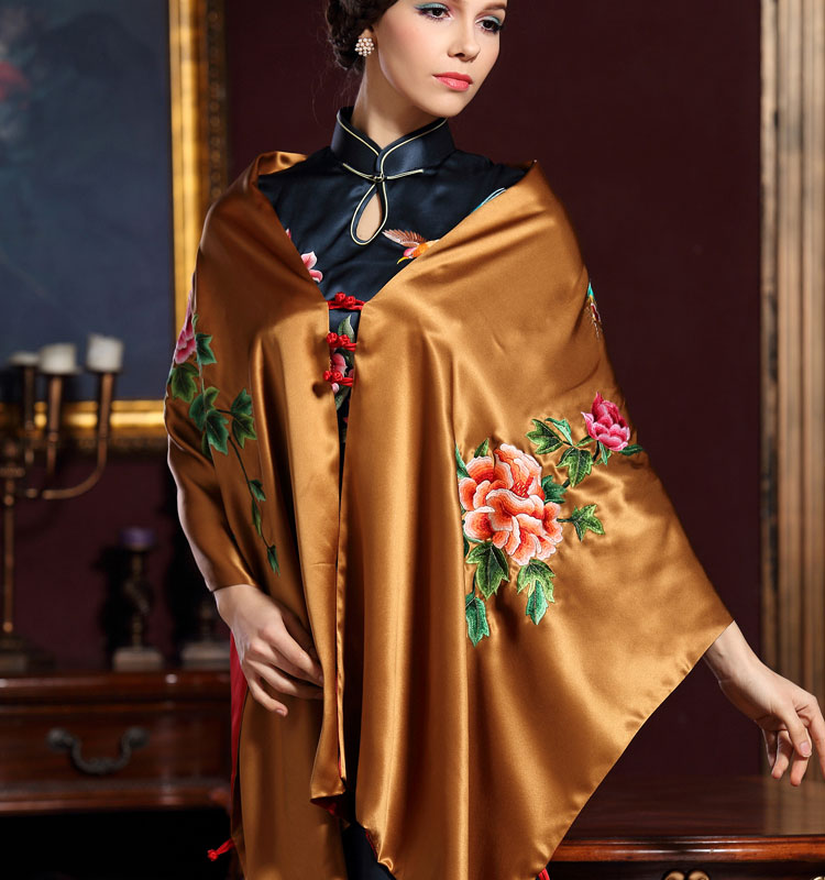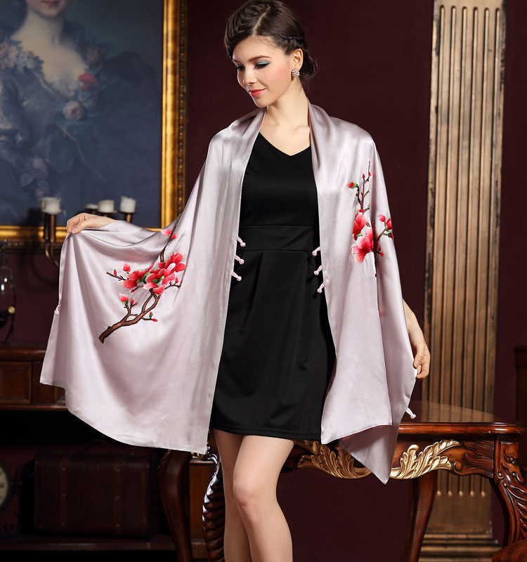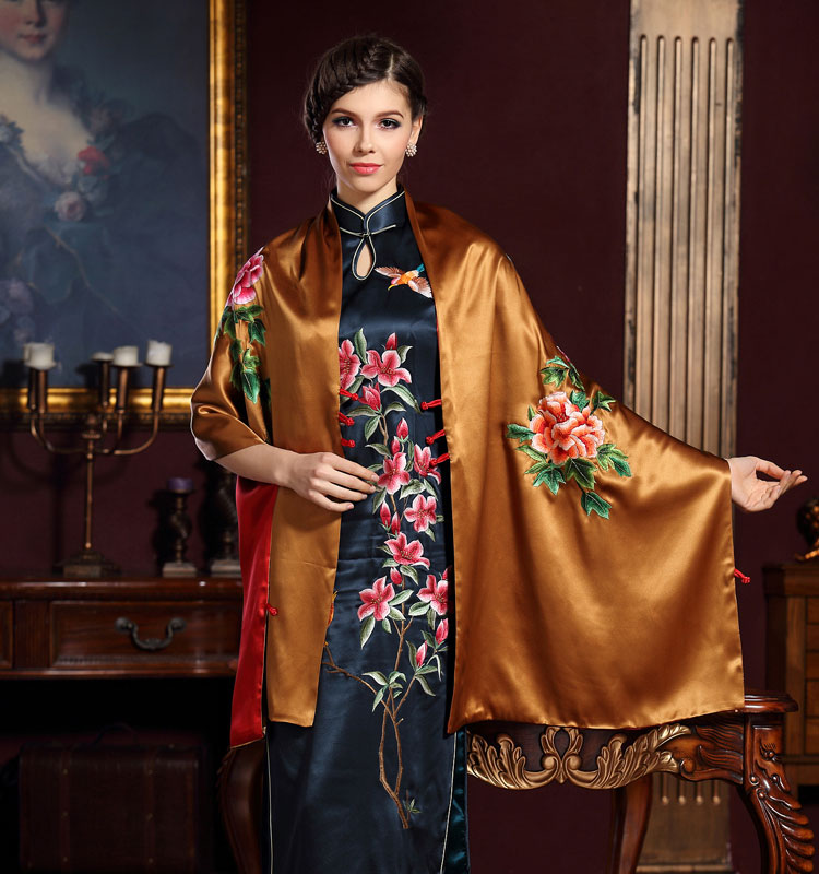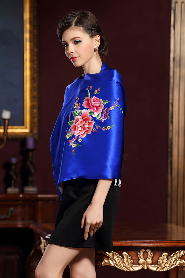高檔絲綢披肩 圍巾 真絲 雙層 手工刺繡 繡花 送客戶