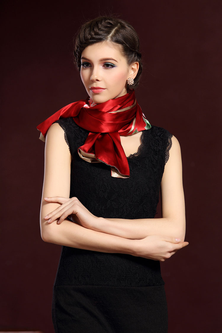 純手工繡花圍巾 真絲圍巾 桑蠶絲 高檔絲綢禮品